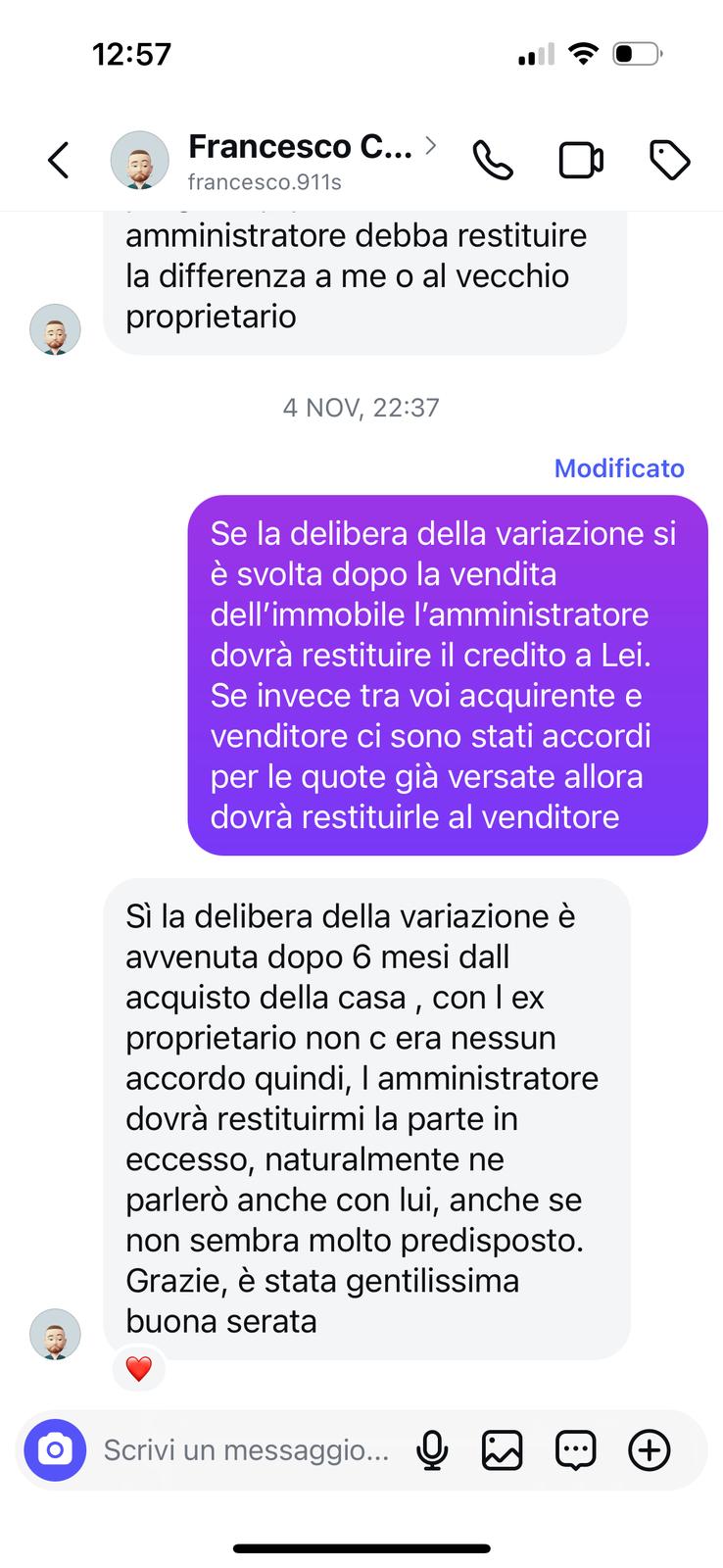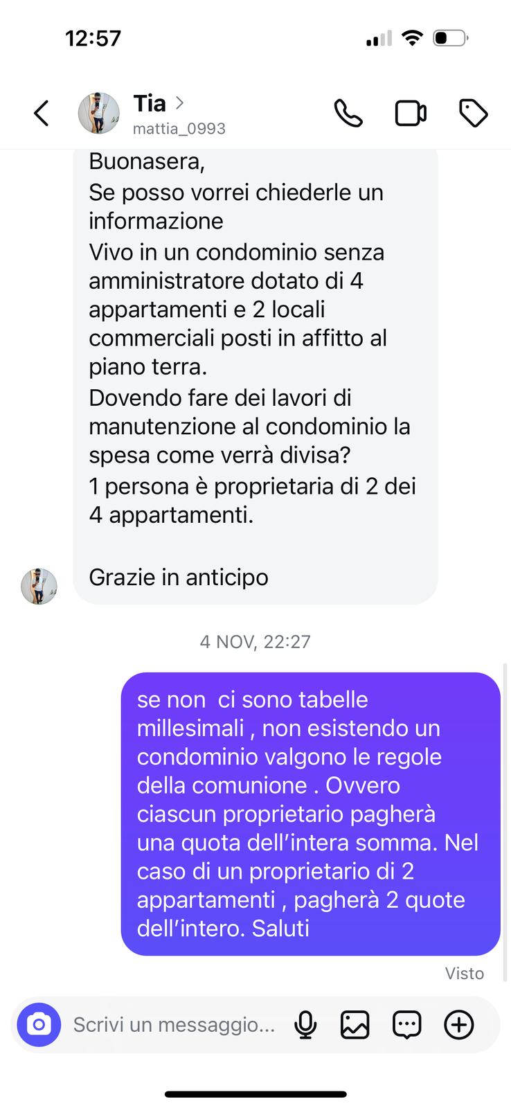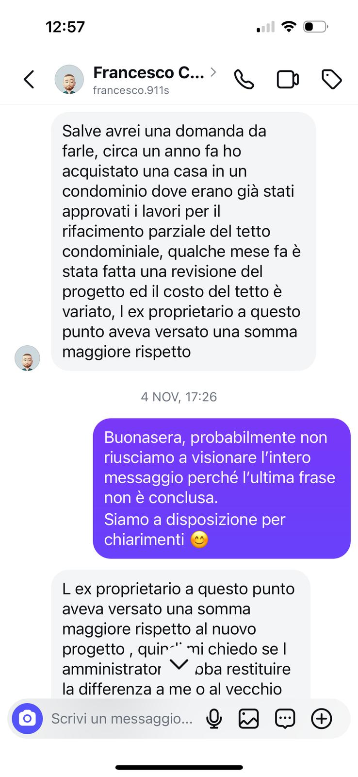 La mia priorità è aiutarti a risolvere i problemi condominiali in modo rapido e concreto. Per questo ho creato un Gruppo WhatsApp riservato, monitorato ogni giorno, dove puoi chiedere supporto e ricevere indicazioni operative. Quando serve, restano disponibili anche e-mail e PEC per le comunicazioni ufficiali. Lavoriamo con criteri chiari e un numero limitato di condomìni, per garantire attenzione, trasparenza e puntualità.